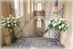 Il total white è sicuramente lo stile da prediligere per le Chiese poco illuminate, la scenografia floreale potrà essere completata da candele e tessuti per donare ulteriore luce alla location.